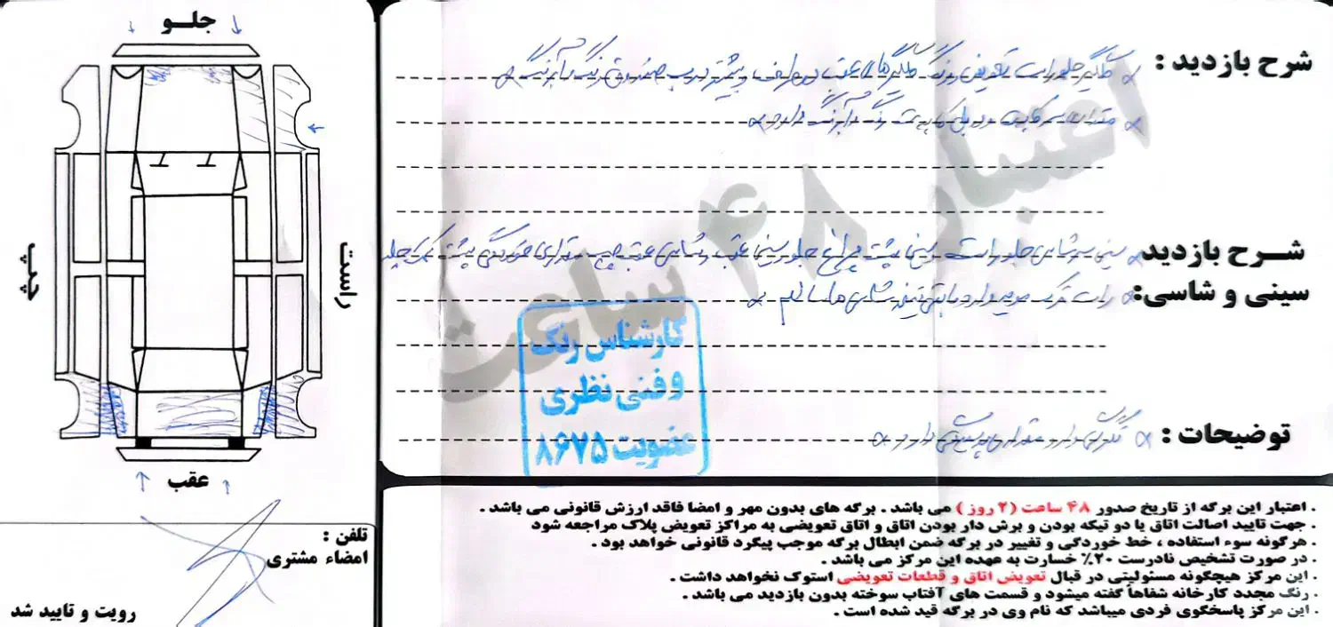 هشدار: پیش از بازدید خودرو و اطمینان از صحت مدارک، از پرداخت وجه خودداری نمایید.